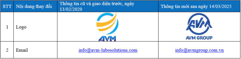Theo định hướng phát triển của công ty cho năm 2025 và những năm tiếp theo. AVM Group đã có quyết định thay đổi tên Công ty, logo và cấu hình email, cụ thể như sau: