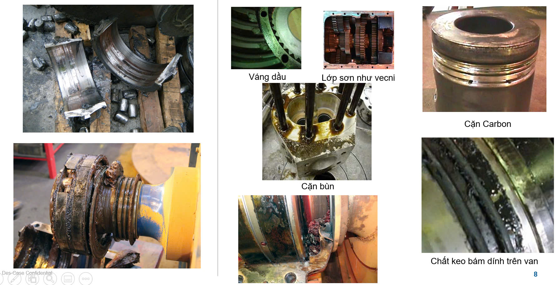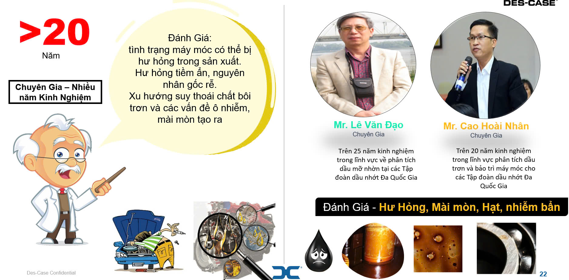 Chúng tôi sử dụng các phương pháp phân tích vật lý và hóa học, kết hợp với kiểm tra hiện trường để đưa ra chẩn đoán chính xác về sự cố thiết bị. Các nội dung phân tích bao gồm: