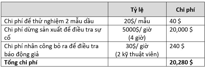 Dưới đây là một ví dụ về chi phí liên quan từ báo cáo dương tính giả: