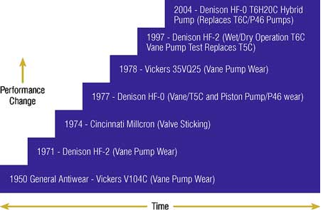 Làm việc với các nhà sản xuất bơm và thiết bị lớn, Lubrizol đã phát triển các chất hóa học ZnDTP ổn định này để đáp ứng các thông số kỹ thuật Thủy lực như tiêu chuẩn Denison HF-0, vẫn còn hiện hành (Hình 1). Gần 90% chất lỏng thủy lực đang được sử dụng ngày nay vẫn dựa trên ZnDTP và hầu hết dựa trên ZnDTP ổn định.