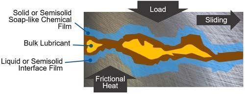 Chúng được kích hoạt bởi sức nóng của ma sát và tạo thành một lớp mỏng (tương tác hóa học) trên bề mặt kim loại bảo vệ kim loại khỏi mài mòn (Hình 4). Chúng cũng giúp bảo vệ dầu gốc khỏi quá trình oxy hóa và bảo vệ kim loại khỏi bị hư hại bởi các axit ăn mòn.