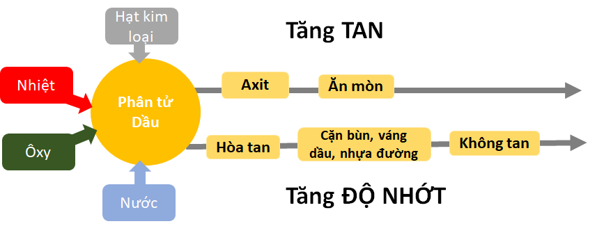 | Nhiệt độ cao (>60°C) | Tăng tốc độ oxy hóa, phân hủy phụ gia, giảm tuổi thọ dầu |