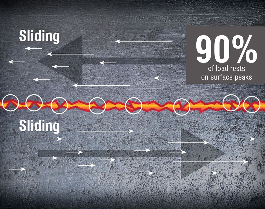 Điều này có liên quan vì khi hai bề mặt kim loại không được bôi trơn và tiếp xúc với nhau, diện tích tiếp xúc thực tế sẽ nhỏ hơn đáng kể so với diện tích tiếp xúc biểu hiện ra. Các bề mặt sẽ chỉ tiếp xúc với nhau khi những "ngọn núi cực nhỏ" được gọi là độ nhám này cao nhất và vươn tới bề mặt kia, ngăn không cho các độ nhám thấp hơn điểm tiếp xúc.