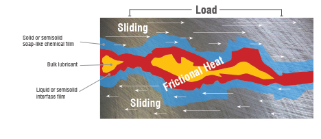 Các màng siêu nhỏ này có sự chuyển đổi từ đặc tính lỏng sang rắn khi chúng tiến gần hơn đến bề mặt kim loại. Mặc dù dầu gốc được ưu tiên để bảo vệ bề mặt máy bằng chế độ bôi trơn thủy động và thủy động đàn hồi, nhưng vẫn sẽ tồn tại các điều kiện bôi trơn đường biên.