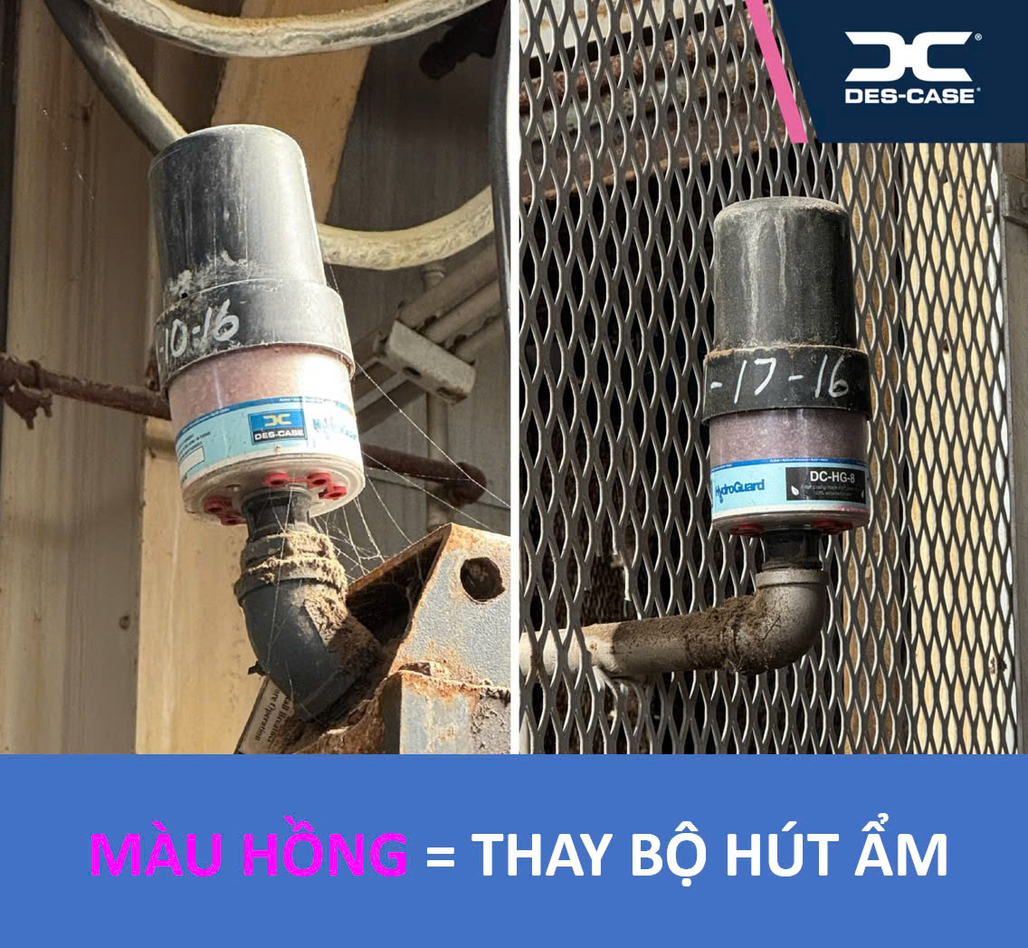 👉 Nên thay thế bằng bộ hút ẩm Des-Case thế hệ mới, giúp kiểm soát độ ẩm hiệu quả, bảo vệ dầu bôi trơn và tăng độ tin cậy cho thiết bị.