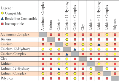 Để tránh mất thời gian ngừng hoạt động và thiết bị bị hỏng hóc nghiêm trọng do khả năng không tương thích của mỡ, bắt buộc chúng ta phải tiến hành thận trọng khi thay đổi mỡ bôi trơn. Thực hiện theo các khuyến nghị được thảo luận/ thống nhất ngoài các khuyến nghị của OEM cung cấp và khuyến nghị của nhà cung cấp chất bôi trơn.